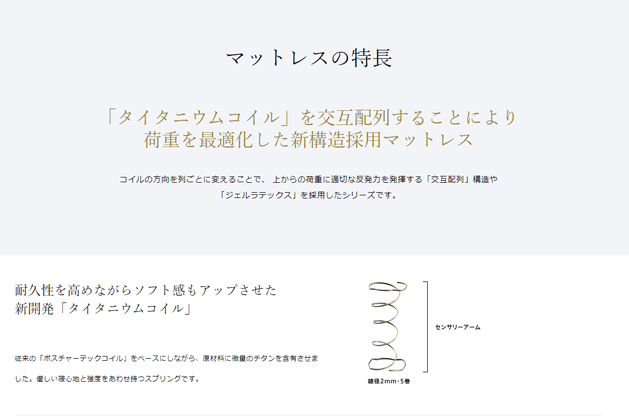身体の凸凹や体圧にあわせて反発力が変化する「ポスチャーテックコイル」をベースにしながら、原材料に微量のチタンを含有させました。