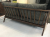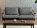 タモ材無垢のフレームが美しいオリエンタルなデザインの木肘ソファ。
